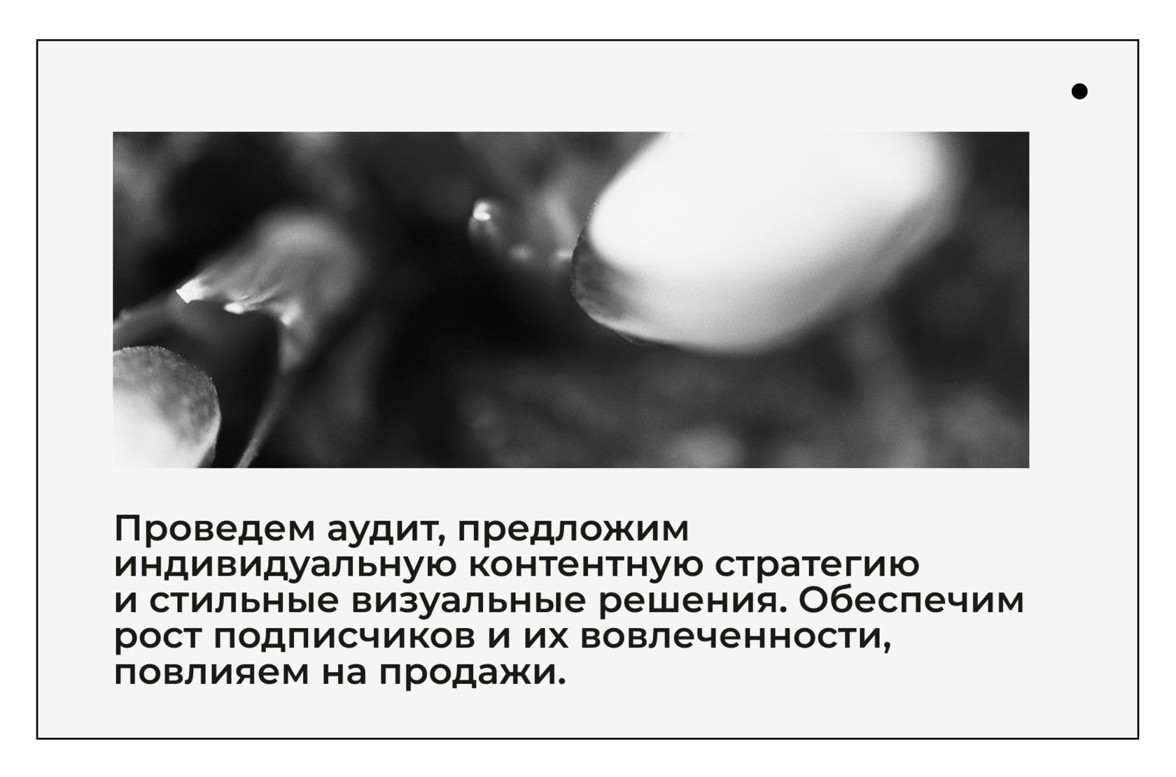 Спасибо за то, что всё удалось — и разработка стиля, и съёмки, и визуальная концепция, и вся SMM стратегия. Также хочу отметить оперативность работы, нам важно, что вы всегда на связи и можете подхватить любую задачу.